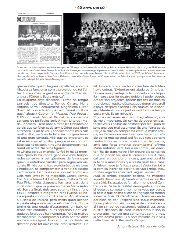 Concert per commemorar 40 anys d’Orfeó Artanenc