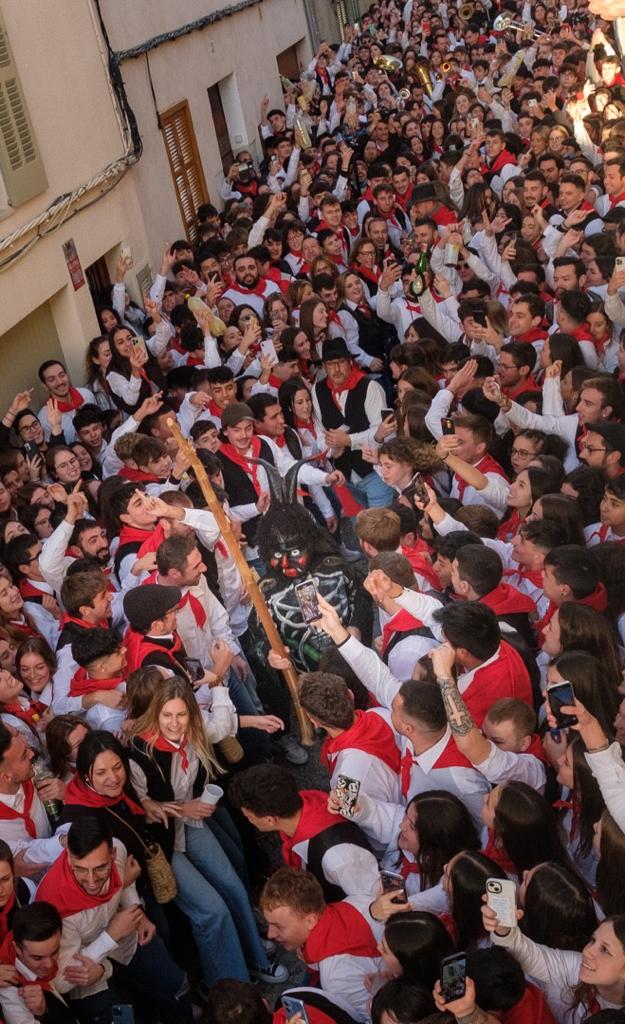 Són les vuit i cinquanta-nou. De Sorteta fins al Coll del Grec no hi cap ningú. La banda està preparada, amb ganes de resistir qualsevol envit. Ho donaran tot. Tres, dos, u… Surten les quatre banyes. Tataxin, taxin, tataxin… Banda, gent, obrers, dimonis… tot és u, tot és molt… i molt és massa. És massa. És la festa que feia tres anys que la gent d’Artà no vivia, i ara la viu, ara sí, ara sí, ara la viu. Ara la viu. La reviu.