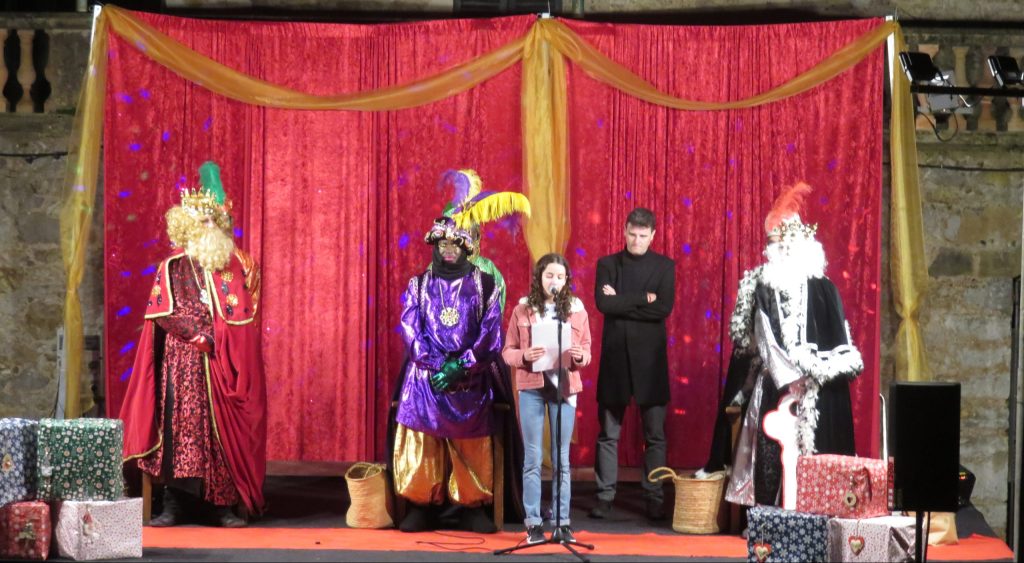 Na Batlessa va ser el lloc escollit (amb un so i un escenari molt dignes) per donar la veu al Batle d’Artà, qui feu entrega de la clau a ses majestats, a en Gaspar i també als tres representants de cada centre, en Pau, na Bàrbara i Marc. Manolo Galán va parlar de la il·lusió de les nines i nins del nostre poble, i va demanar que tothom tengui com a mínim un regal, per fer que la nit màgica ho sigui de veres. Va agrair la feina feta per les Amipes, la gent de la residència i a totes les persones que fan possible la cavalcada. Finalment, va agrair que el seu desig de l’any 2022 s’hagi complert: que enguany tenguem Sant Antoni! Un moment ben aplaudit pel nombrós públic assistent.